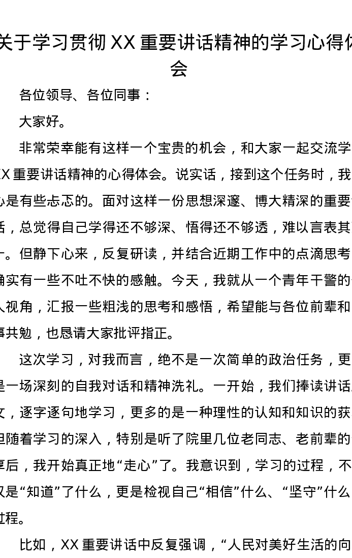 关于学习贯彻XX重要讲话精神的学习心得体会