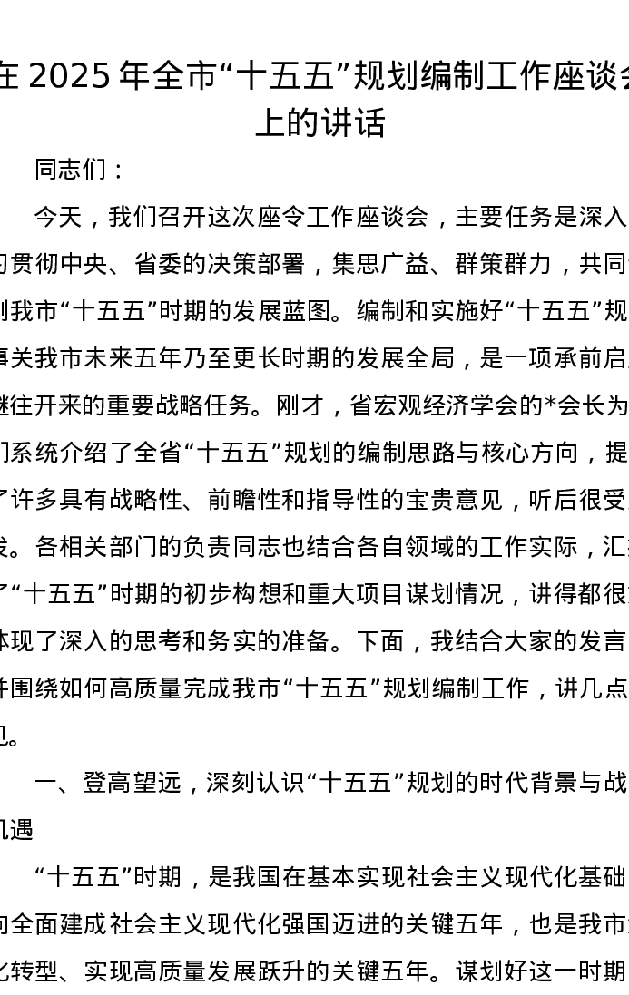 在2025年全市“十五五”规划编制工作座谈会上的讲话