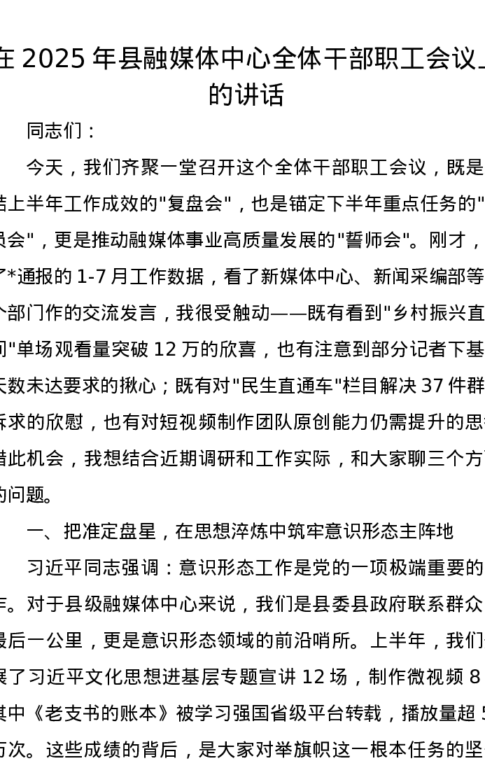 在2025年县融媒体中心全体干部职工会议上的讲话