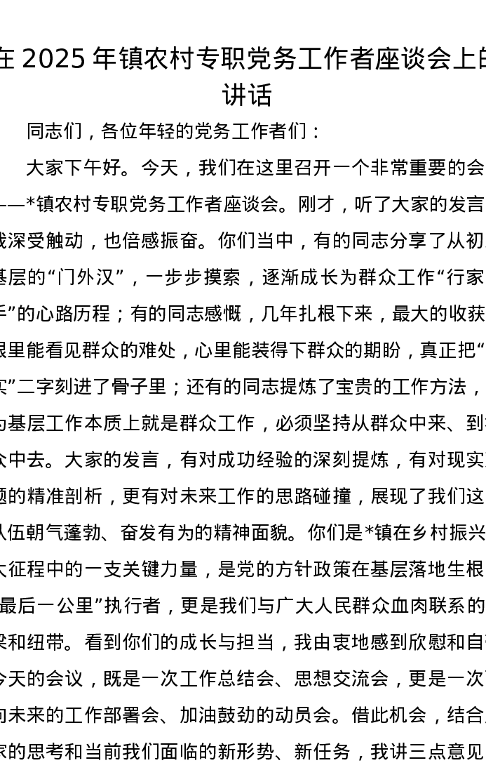 在2025年镇农村专职党务工作者座谈会上的讲话
