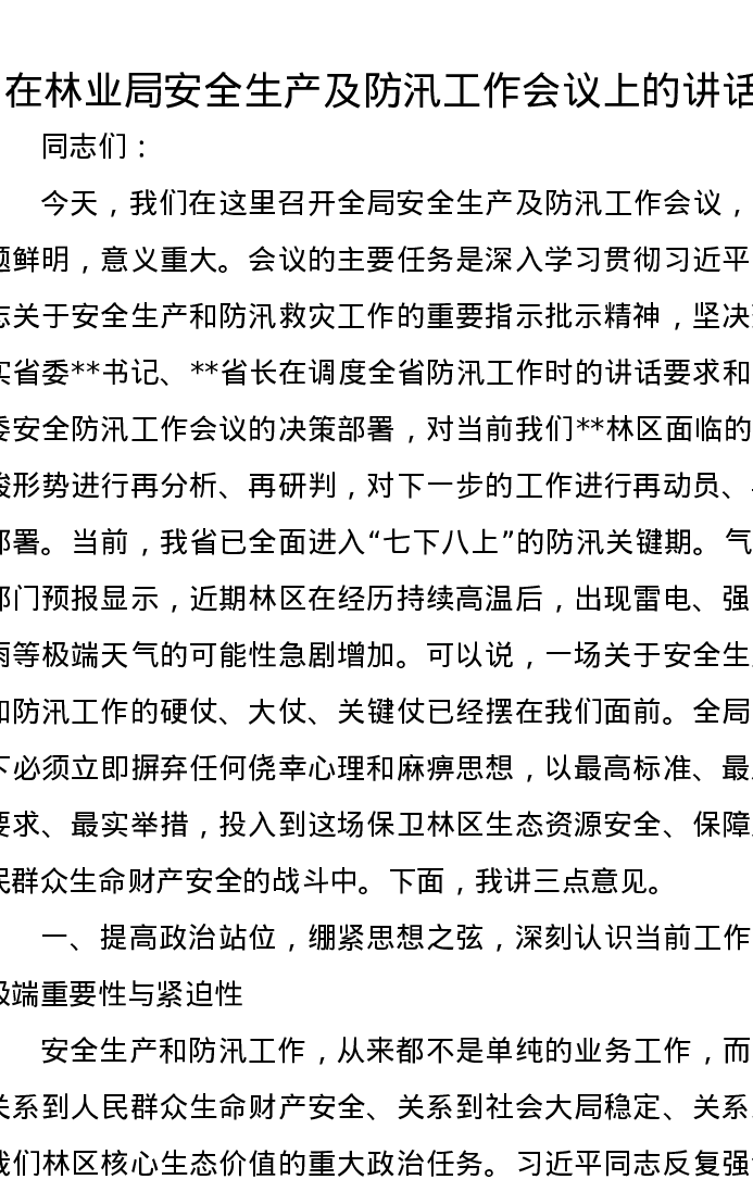 在林业局安全生产及防汛工作会议上的讲话