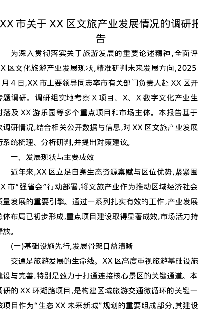 XX市关于XX区文旅产业发展情况的调研报告