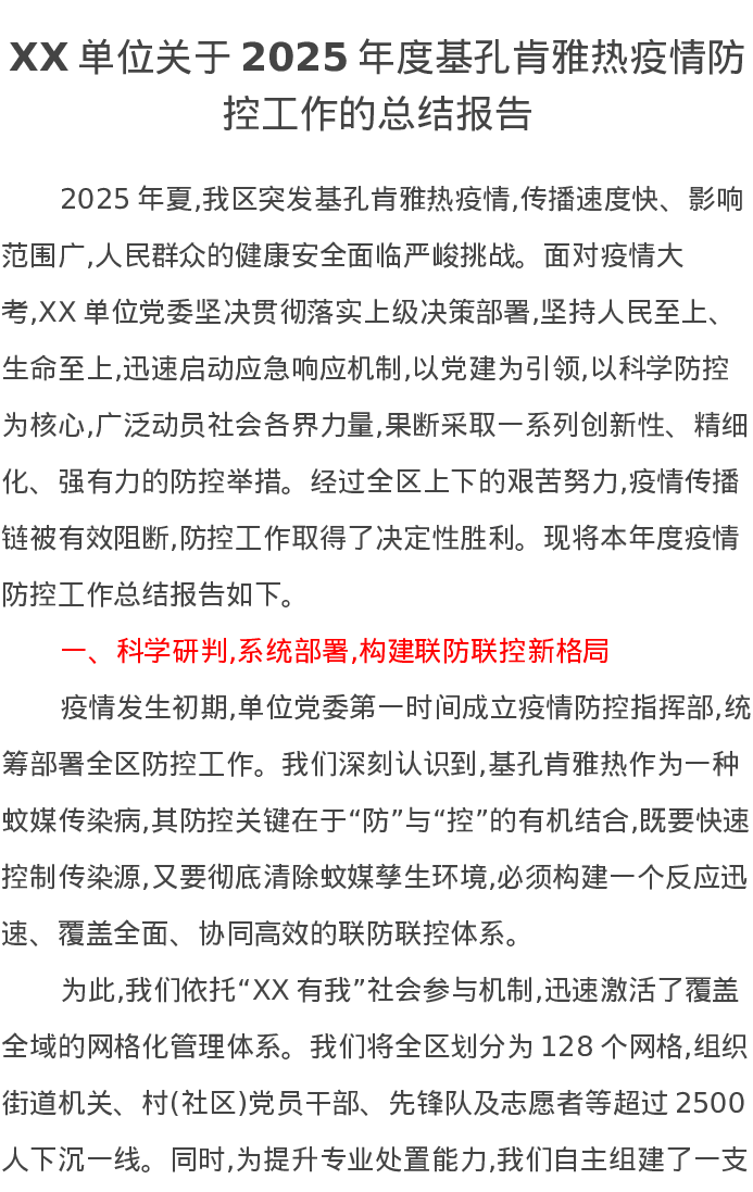 XX单位关于2025年度基孔肯雅热疫情防控工作的总结报告