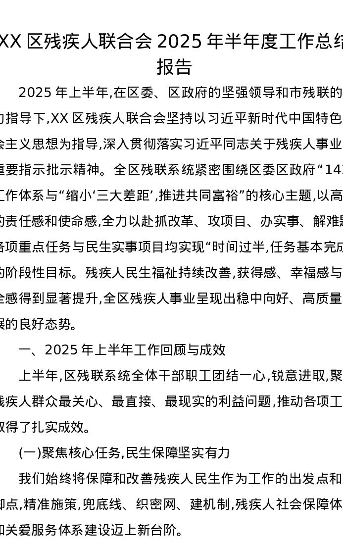 XX区残疾人联合会2025年半年度工作总结报告