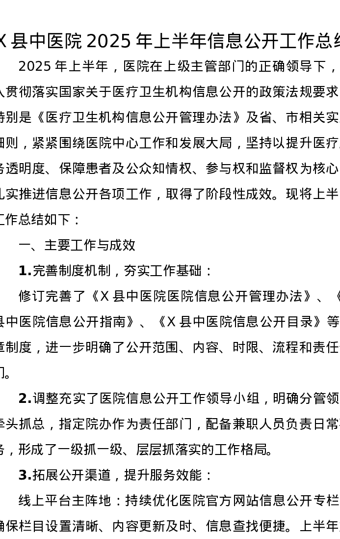 X县中医院2025年上半年信息公开工作总结