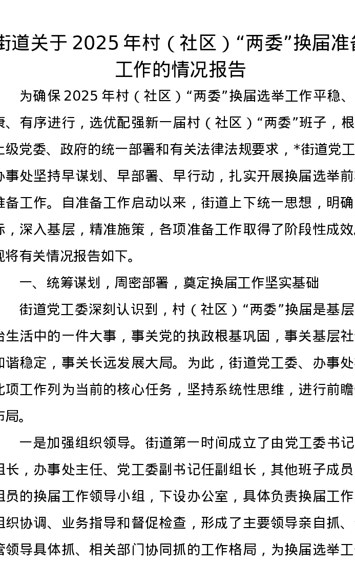 街道关于2025年村(社区)“两委”换届准备工作的情况报告