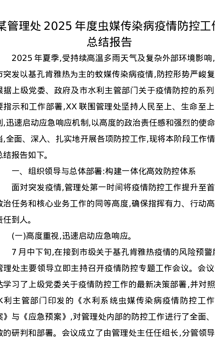 某管理处2025年度虫媒传染病疫情防控工作总结报告
