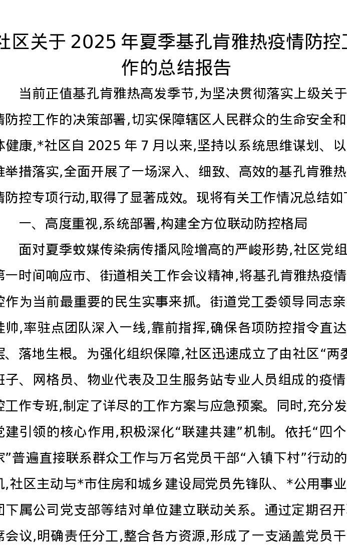 社区关于2025年夏季基孔肯雅热疫情防控工作的总结报告