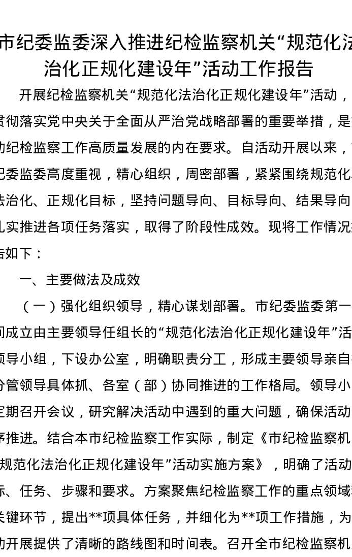 市纪委监委深入推进纪检监察机关“规范化法治化正规化建设年”活动工作报告