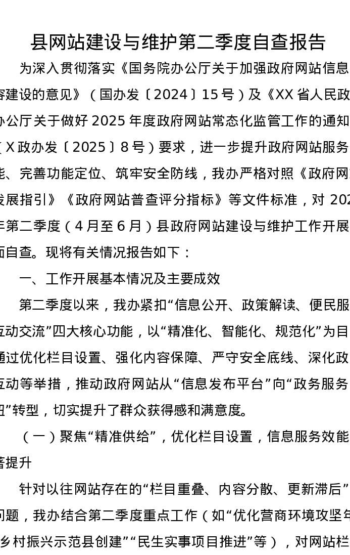 县网站建设与维护第二季度自查报告