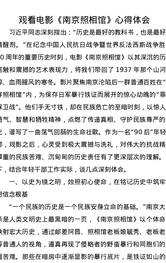 观看电影《南京照相馆》心得体会