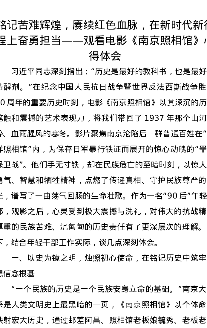铭记苦难辉煌,赓续红色血脉,在新时代新征程上奋勇担当——观看电影《南京照相馆》心得体会