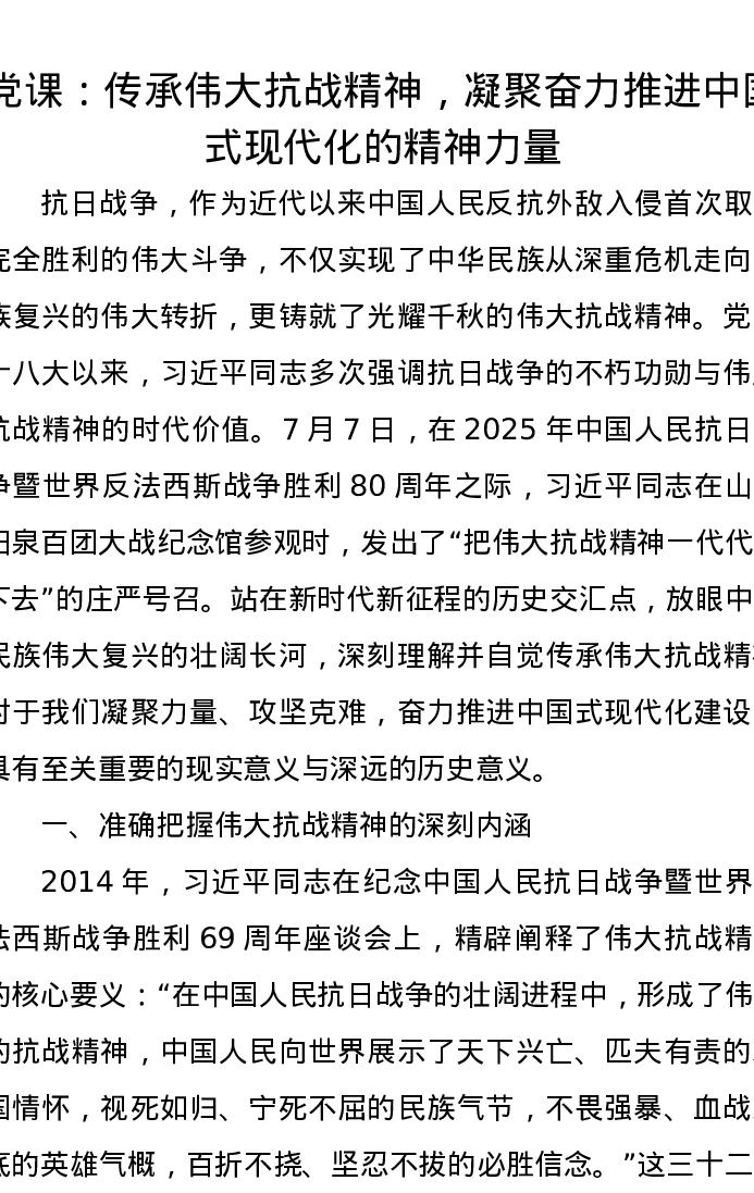 党课讲稿:传承伟大抗战精神,凝聚奋力推进中国式现代化的精神力量