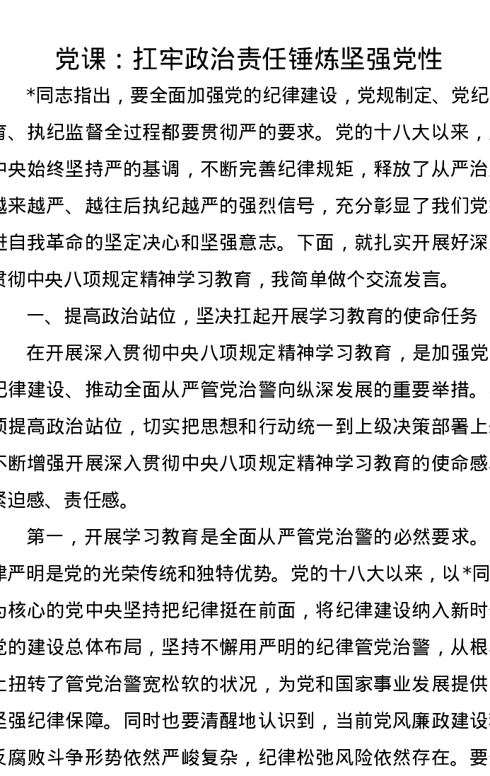 公安党课讲稿:扛牢政治责任锤炼坚强党性