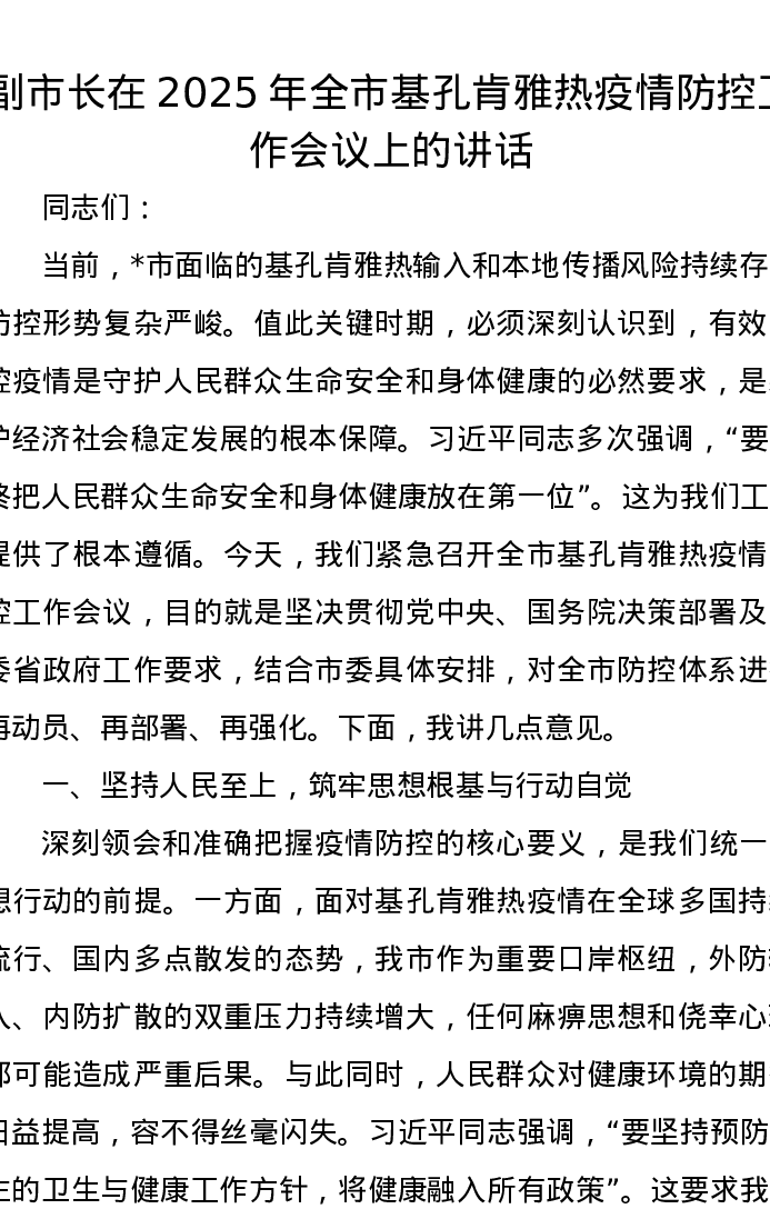 副市长在2025年全市基孔肯雅热疫情防控工作会议上的讲话