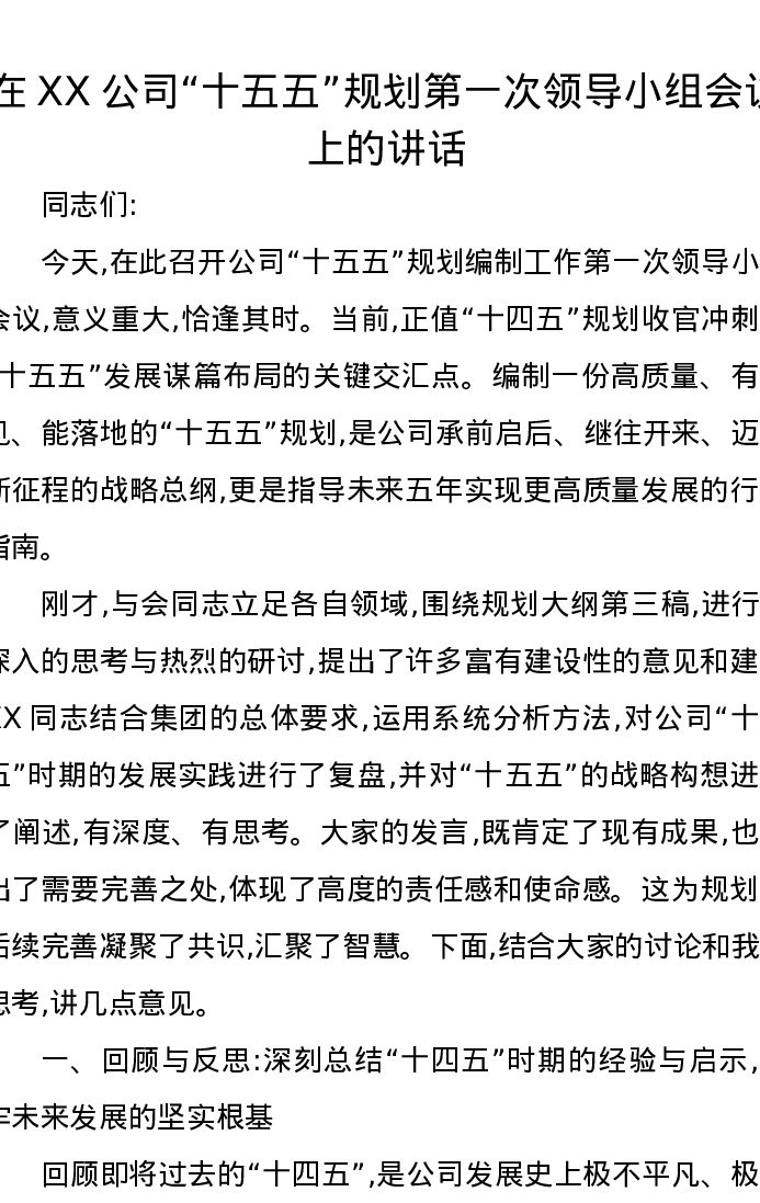 在XX公司“十五五”规划第一次领导小组会议上的讲话
