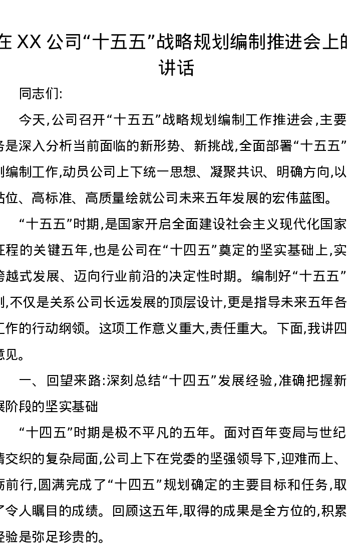 在XX公司“十五五”战略规划编制推进会上的讲话