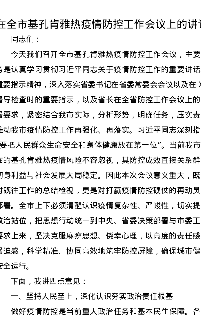 在全市基孔肯雅热疫情防控工作会议上的讲话