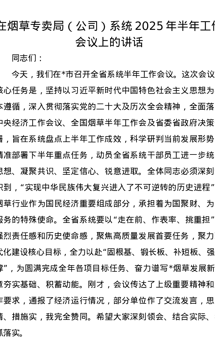 在烟草专卖局(公司)系统2025年半年工作会议上的讲话