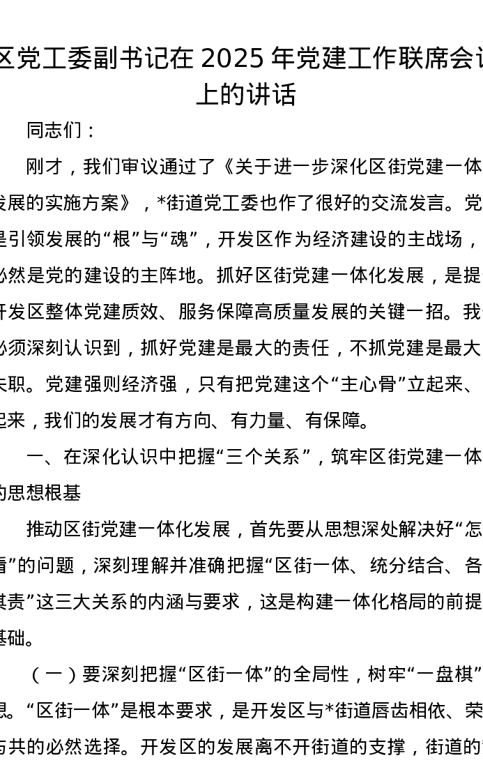 区党工委副书记在2025年党建工作联席会议上的讲话