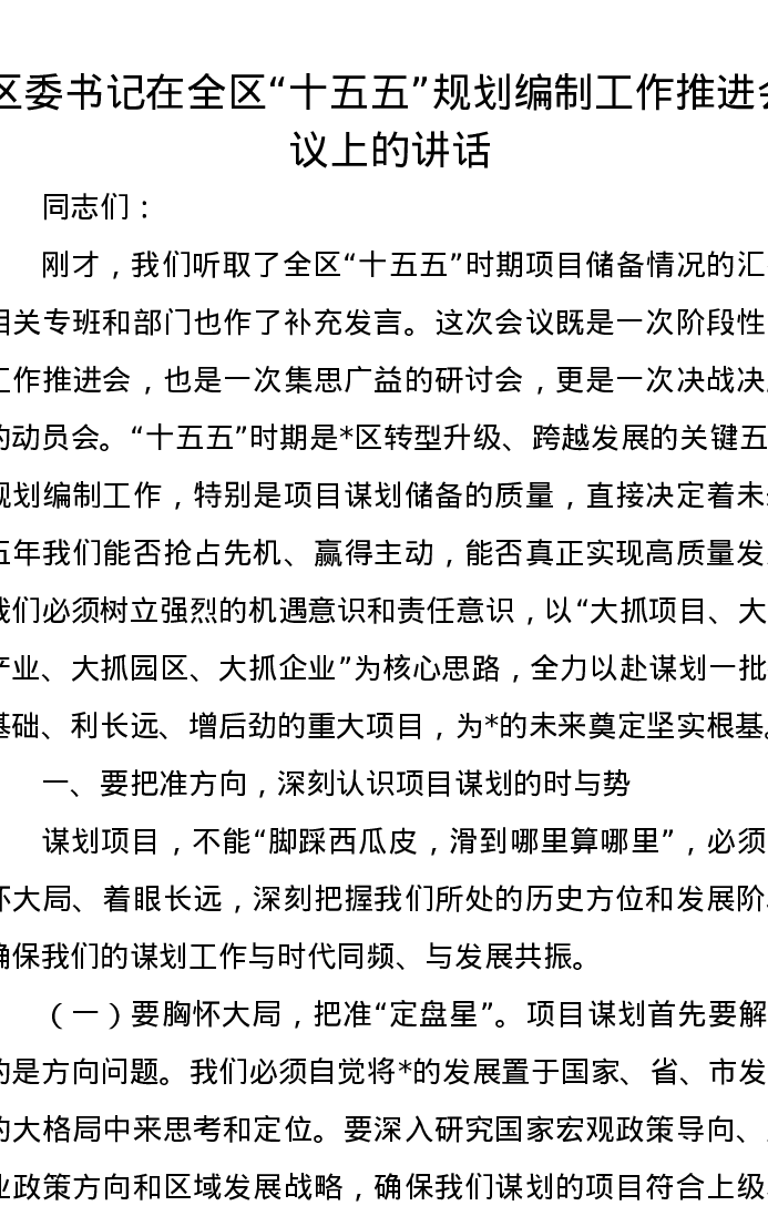 区委书记在全区“十五五”规划编制工作推进会议上的讲话