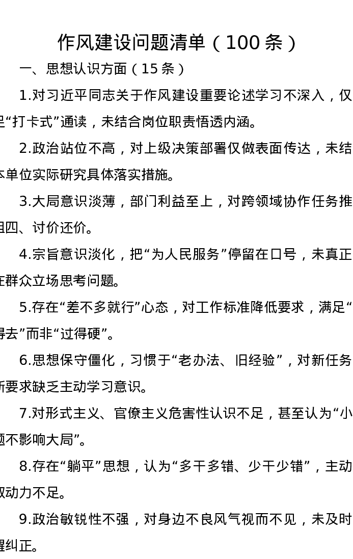 作风建设问题清单(100条)