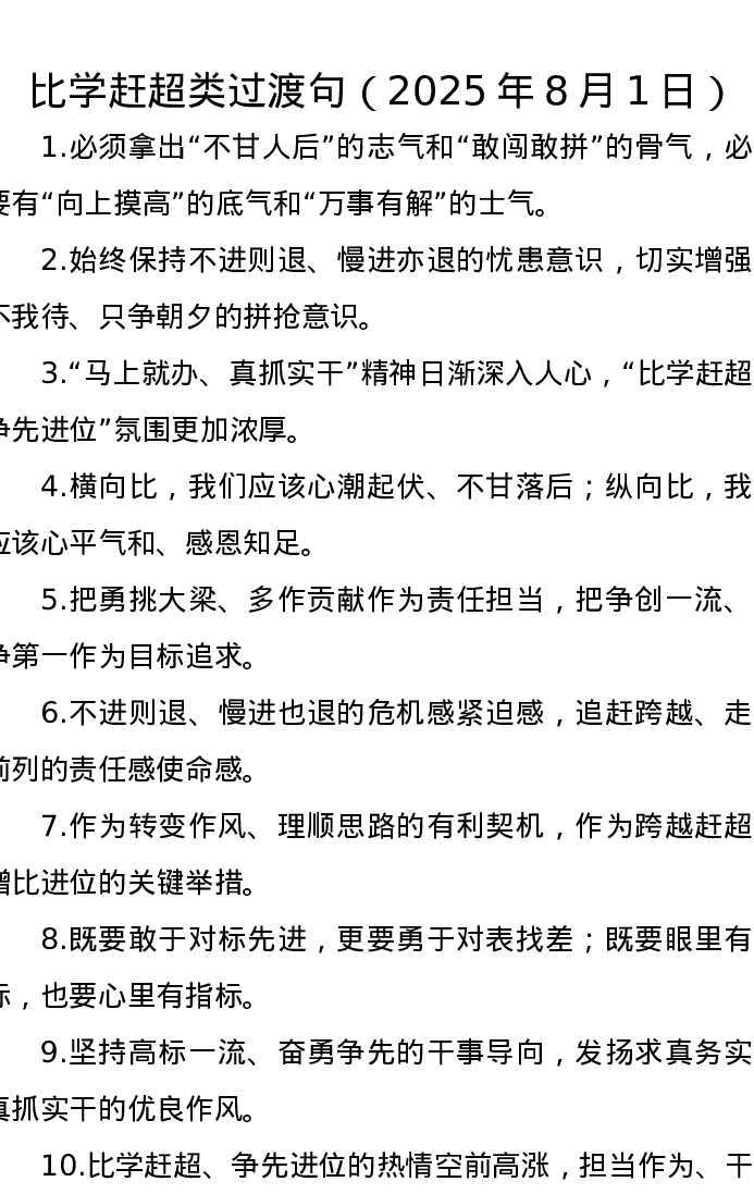 比学赶超类过渡句(2025年8月1日)