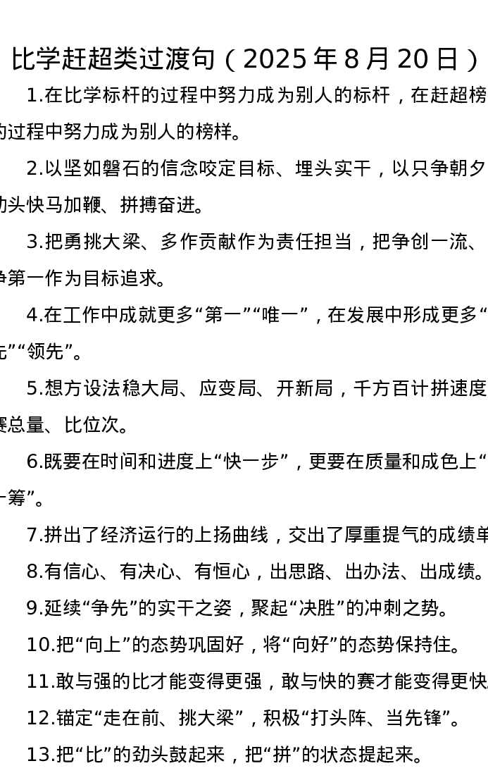 比学赶超类过渡句(2025年8月20日)