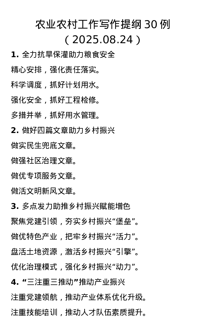 农业农村工作写作提纲30例(2025