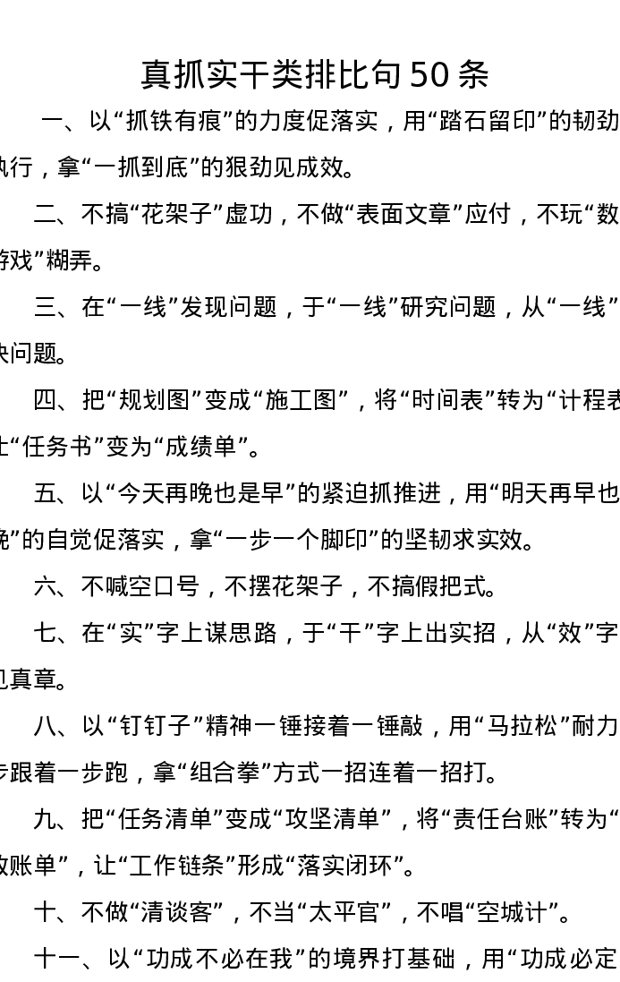 真抓实干类排比句50条