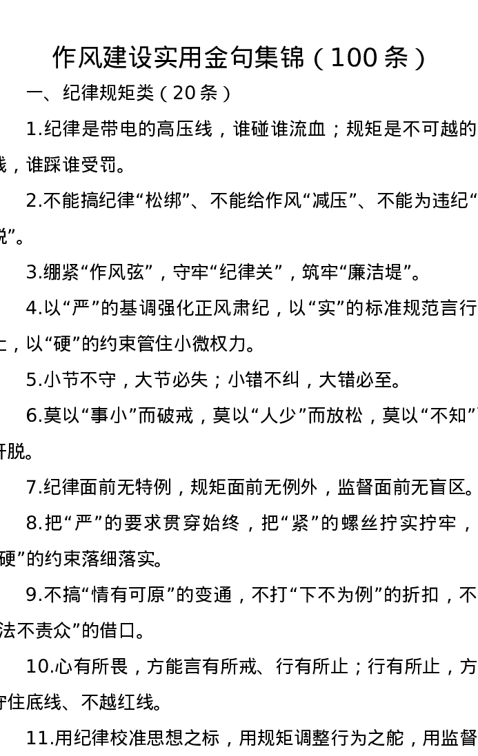 作风建设实用金句集锦(100条)