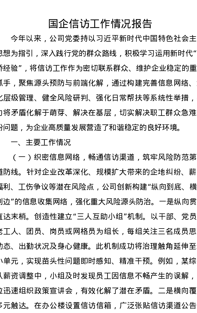 国企信访工作情况报告