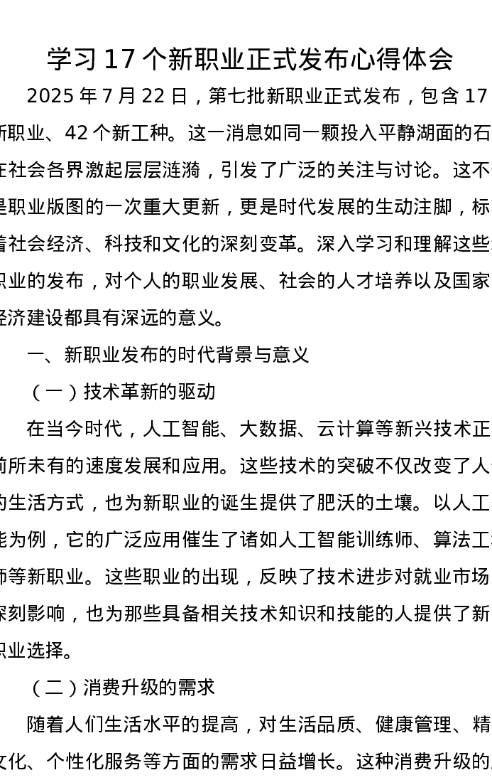 学习17个新职业正式发布心得体会
