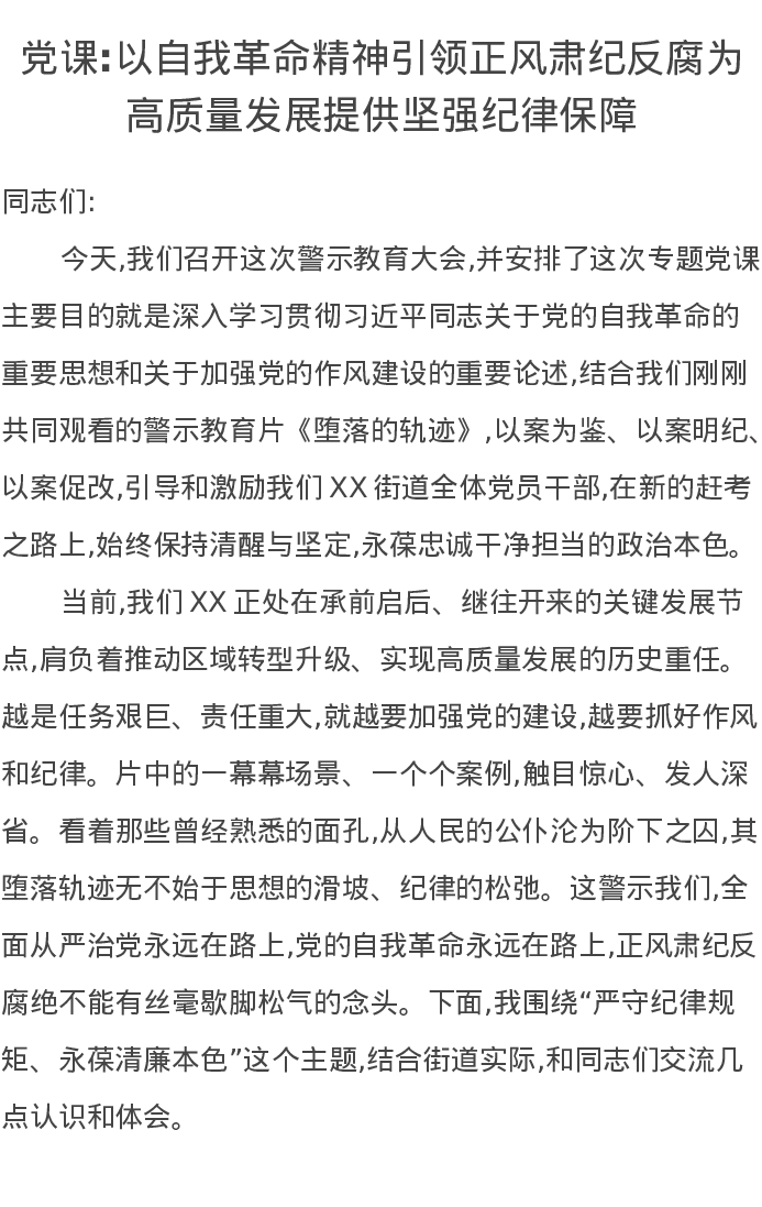 党课讲稿:以自我革命精神引领正风肃纪反腐为高质量发展提供坚强纪律保障
