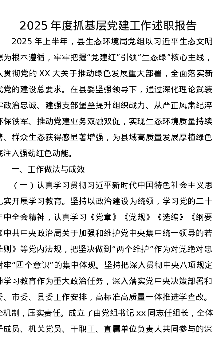 2025年度抓基层党建工作述职报告