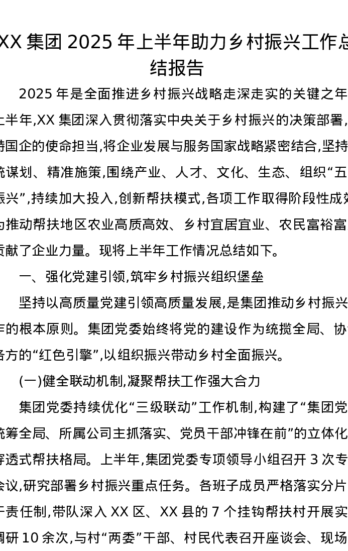 XX集团2025年上半年助力乡村振兴工作总结报告