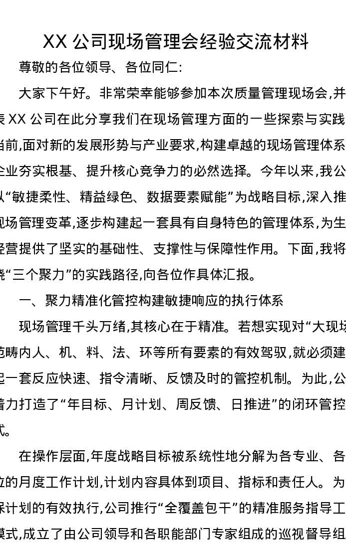 XX集团关于以“三个聚力”为核心全面提升现场管理工作的经验交流报告