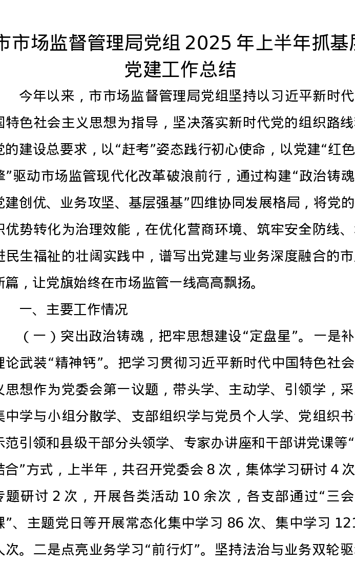 市市场监督管理局党组2025年上半年抓基层党建工作总结