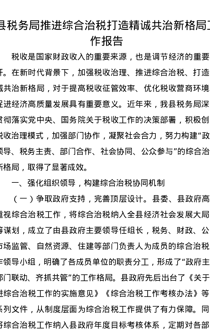 县税务局推进综合治税打造精诚共治新格局工作报告