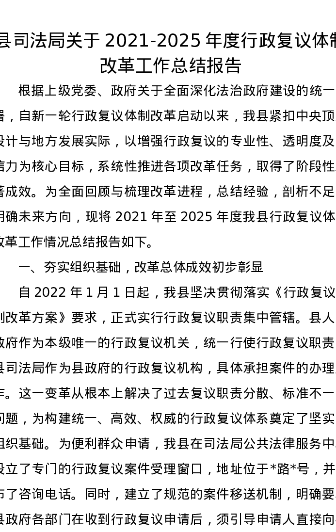 县司法局关于2021-2025年度行政复议体制改革工作总结报告