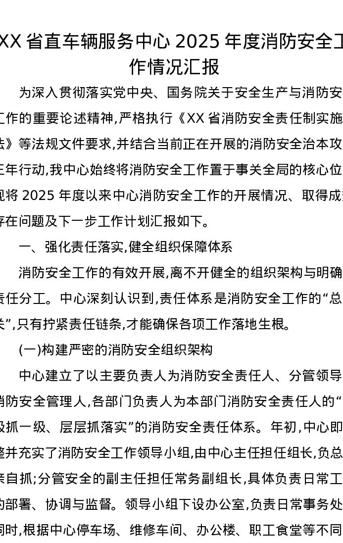 XX省直车辆服务中心2025年度消防安全工作情况汇报