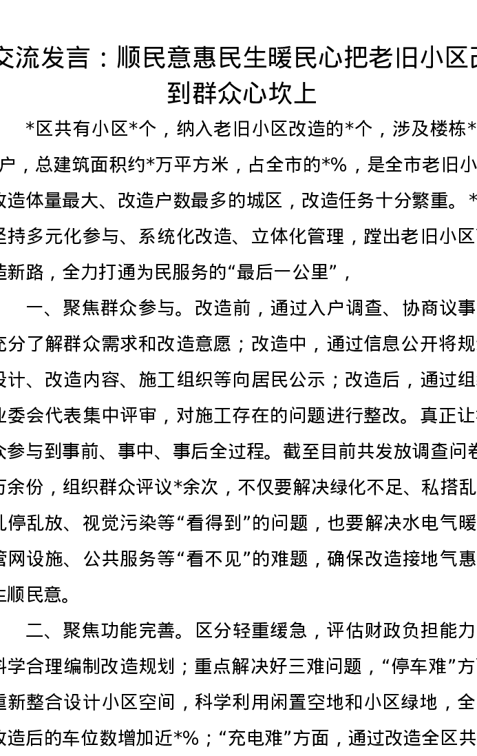 交流发言:顺民意 惠民生 暖民心 把老旧小区改到群众心坎上