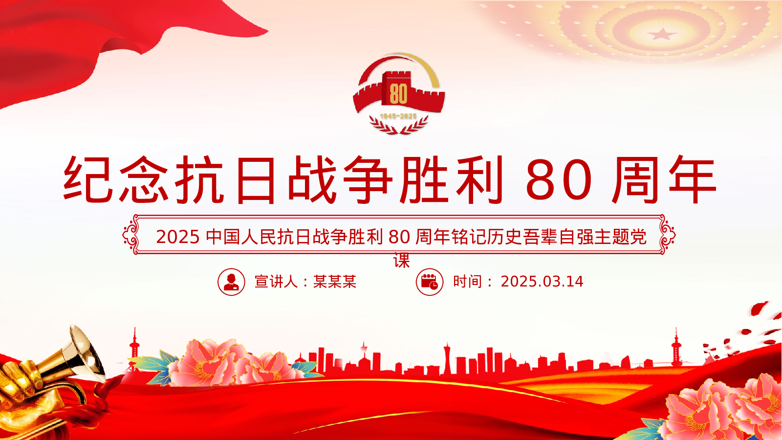 PPT:1945-2025纪念抗日战争胜利80周年铭记历史吾辈自强党课
