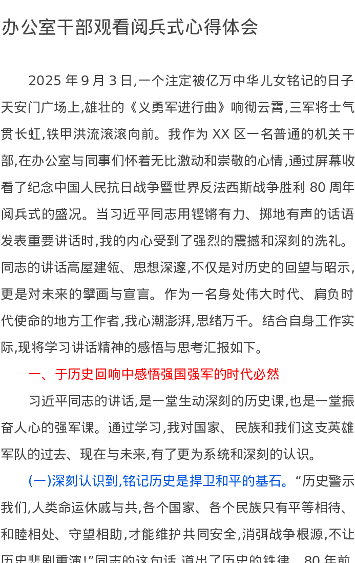 办公室干部观看阅兵式心得体会
