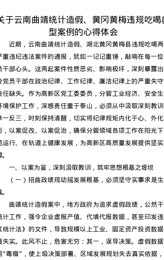 关于云南曲靖统计造假、黄冈黄梅违规吃喝典型案例的心得体会