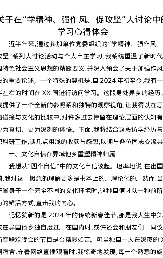 关于在“学精神、强作风、促攻坚”大讨论中的学习心得体会