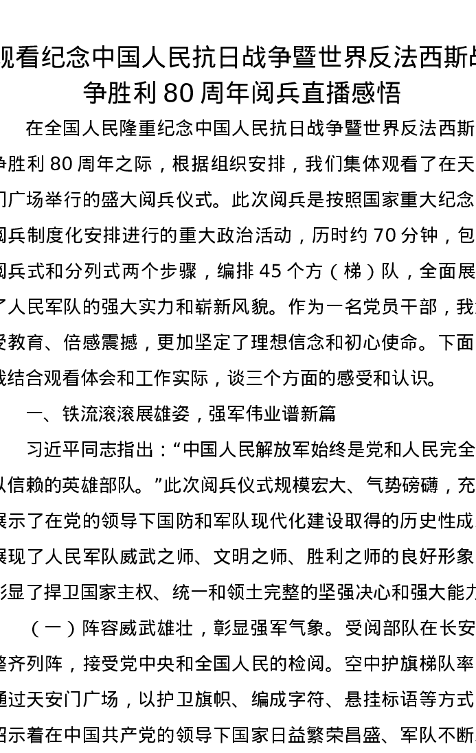 观看纪念中国人民抗日战争暨世界反法西斯战争胜利80周年阅兵直播感悟心得体会