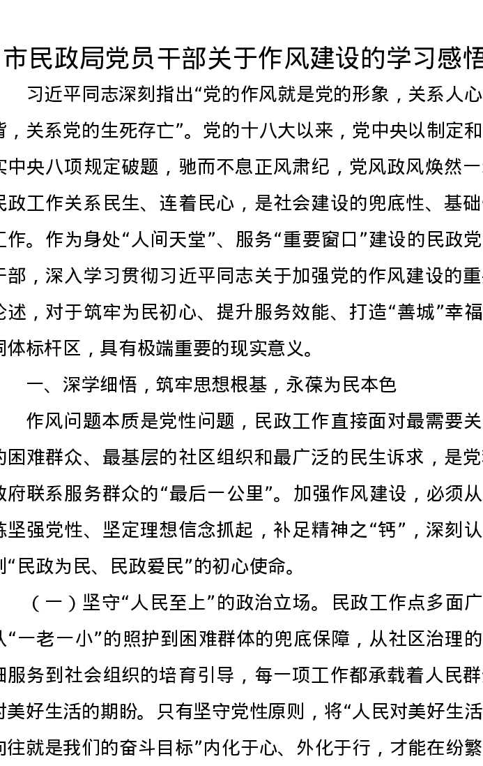 市民政局党员干部关于作风建设的学习感悟