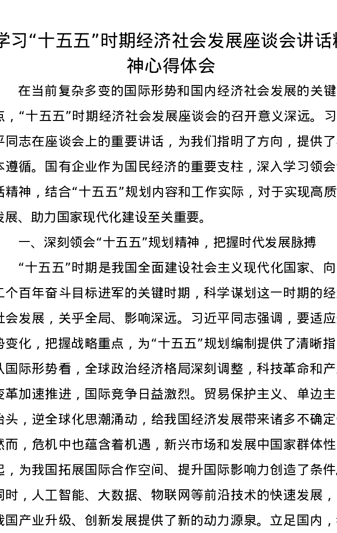 学习“十五五”时期经济社会发展座谈会讲话精神心得体会