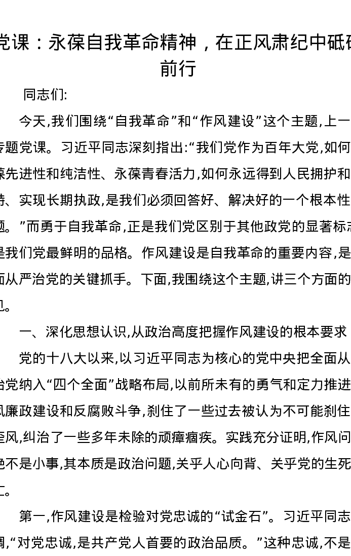 党课讲稿:永葆自我革命精神,在正风肃纪中砥砺前行